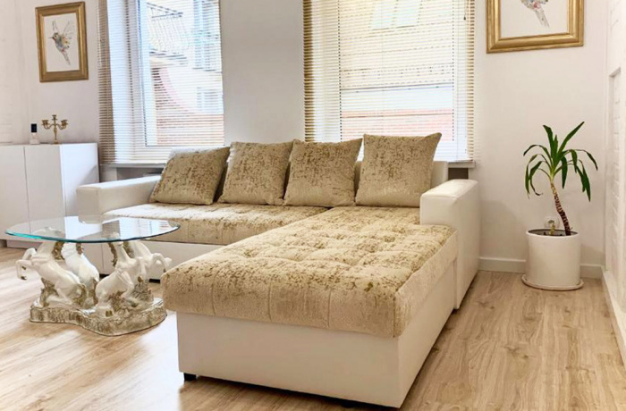 - w salonie narożnik z funkcja spania